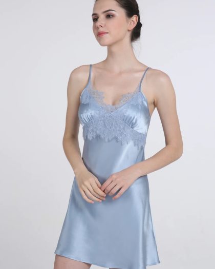 “Madeira” silk women’s nightgown. TM “Silk Kiss”. Natural 100% silk. Blue