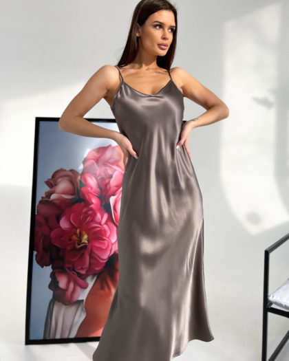 Silk dress combination with shoulder straps, cappuccino TM “Silk Kiss”. Natural 100% silk.