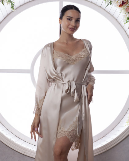 Silk women’s combination and bathrobe “Florina”, beige. TM “Silk Kiss”. Natural 100% silk
