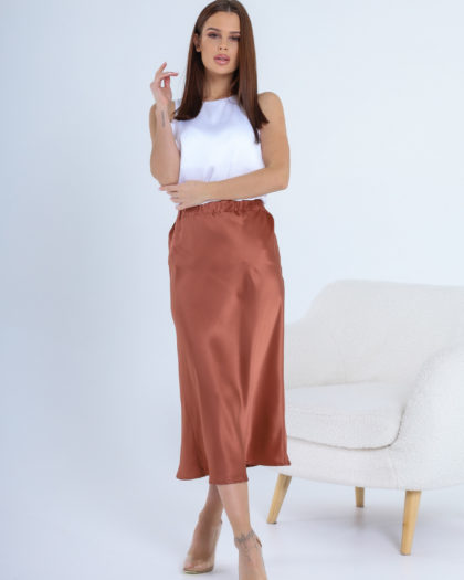 Silk women’s skirt. TM “Silk Kiss”. Natural 100% silk. Copper, midi