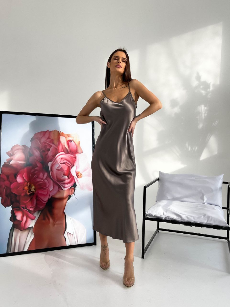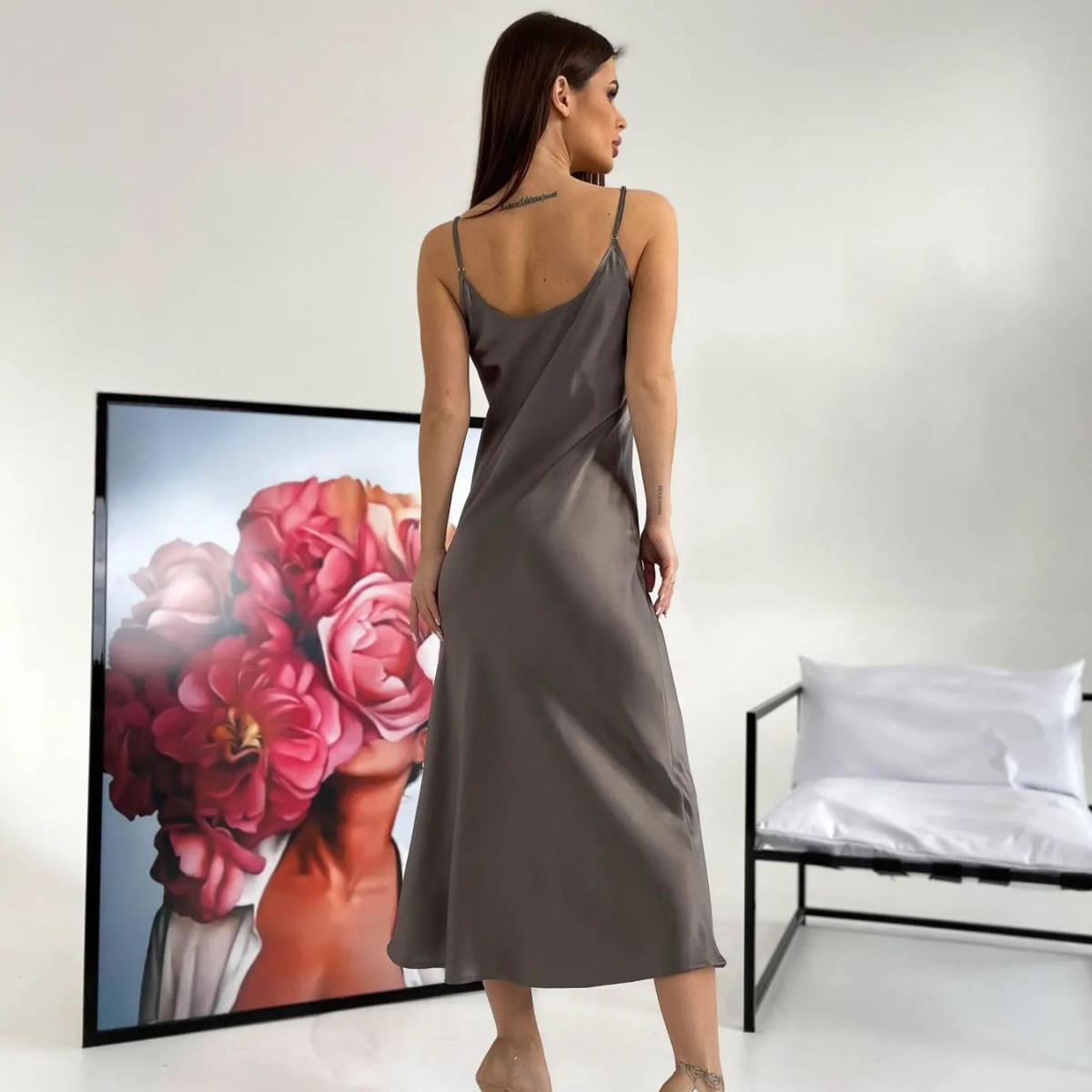 This versatile slip dress is perfect for any occasion, from evening events to dates. The fitted cut and midi length add elegance and sophistication to the look. Gray color adds restraint and respectability, which emphasizes your style and good taste.