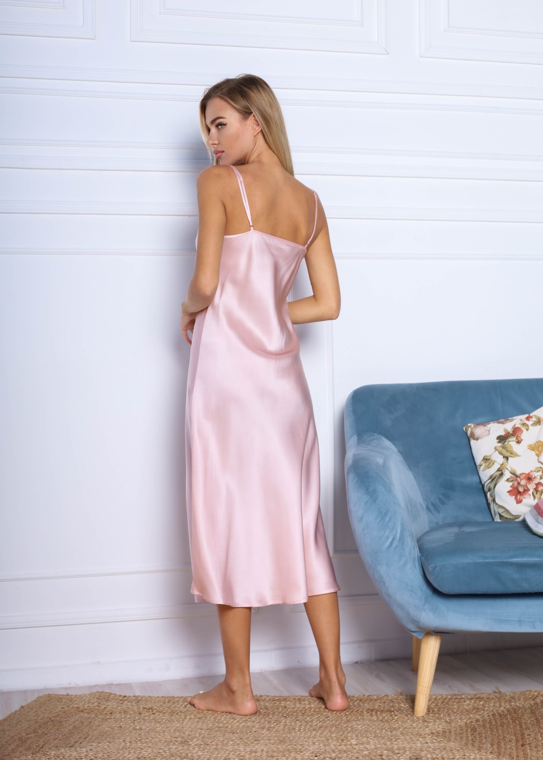 A slip dress made of soft pink 100% silk will definitely become the most beloved outfit of any woman as soon as it appears in her wardrobe. Still – this dress is simple and elegant, no frills, but at the same time, graceful and sexy. This is exactly what a confident woman needs, ready to enchant everyone at a gala event, holiday or party.