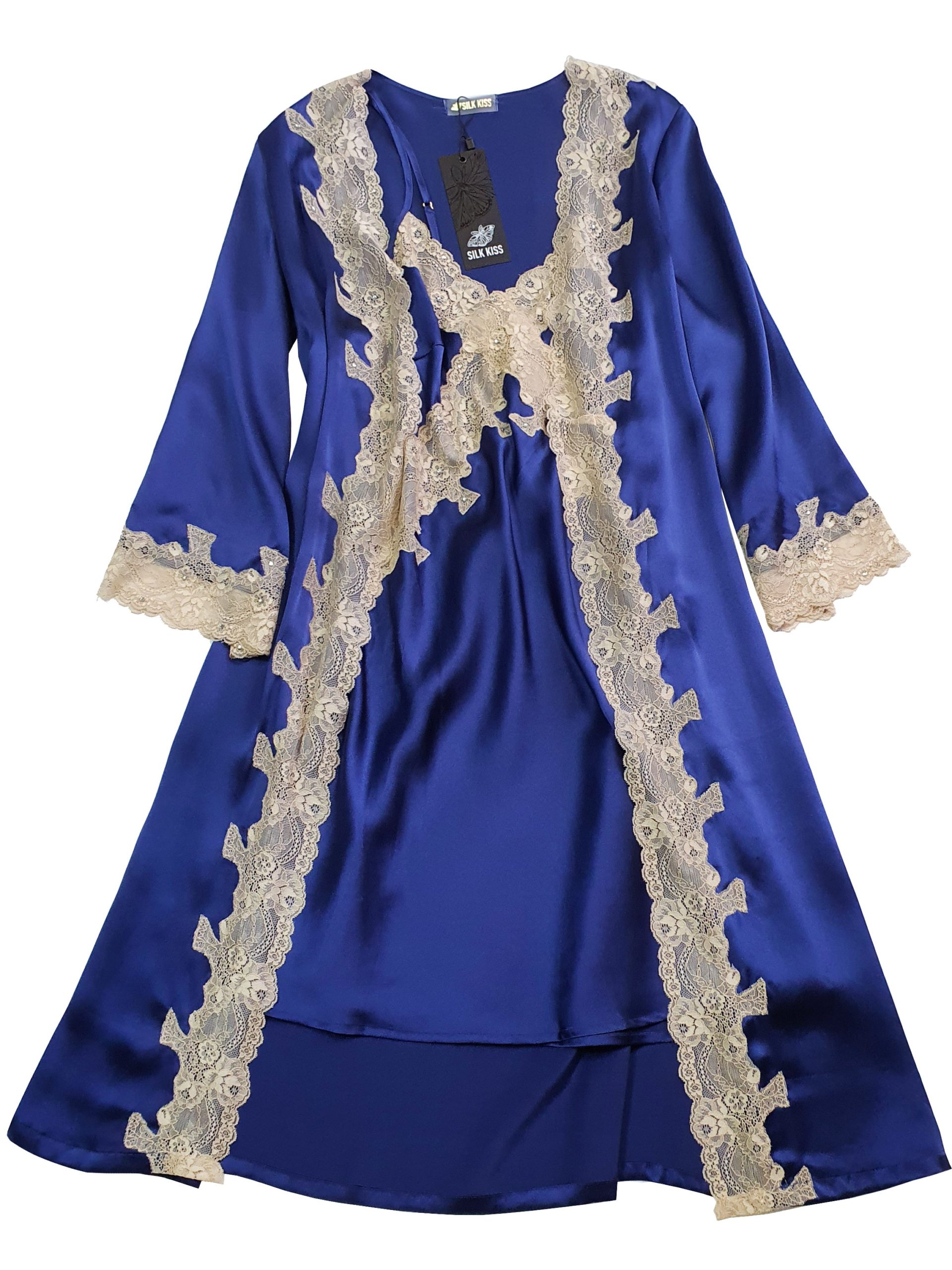 A natural silk shirt and robe, the Sevilla set is an ideal choice for those who value not only beauty, but also comfort. The Sevilla blue set is the choice of women who deserve the best on earth.